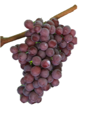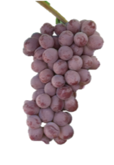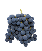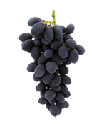 Medium-sized, blue-black, round to slightly-oval, seedless grapes.